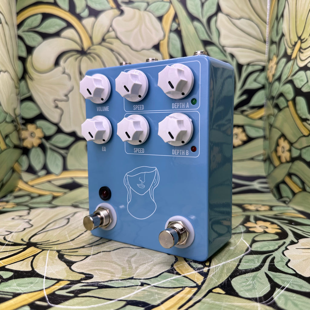 Over the next few years, Madison and Josh became good friends after Josh featured her on the JHS Show episode “Who Is Madison Cunningham?” Josh would often stop by her concerts as an unofficial guitar tech, building her boards and helping find solutions for sounds she wanted. During a sound check in Lawrence, KS, Josh noticed that even though her Emperor was always on and in vibrato mode, Madison kept reaching down to switch the settings to create another faster and deeper vibrato tone for a particular song. Sensing an opportunity to make it easier to use during live shows, Josh developed the idea for an entirely new stompbox that suited Madison’s needs, and soon she was touring with that first prototype.