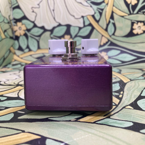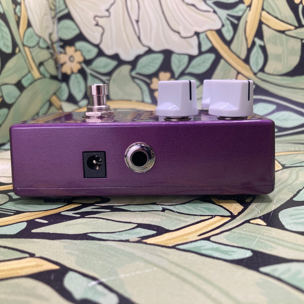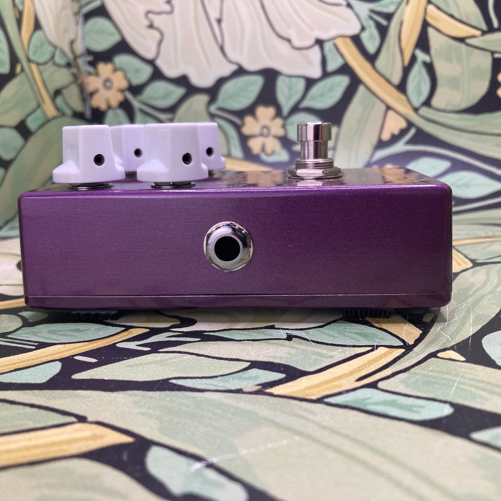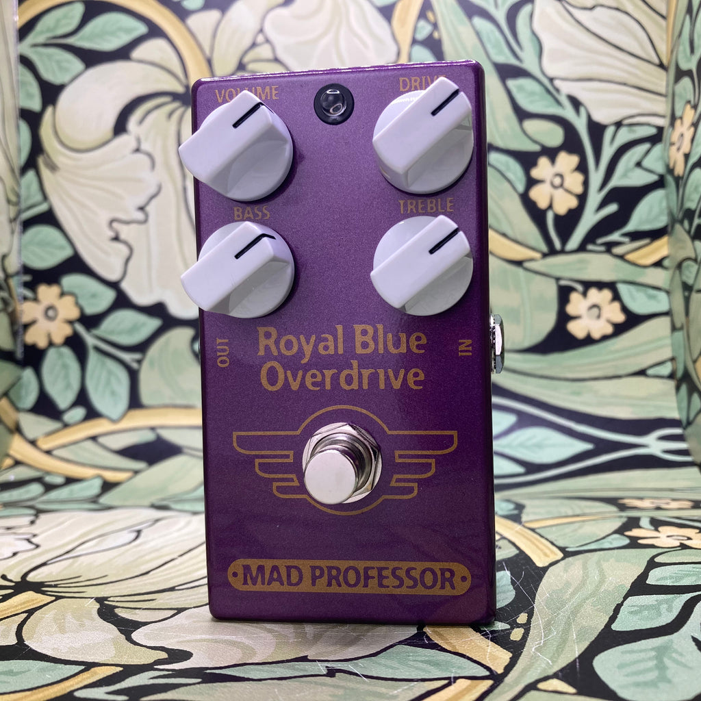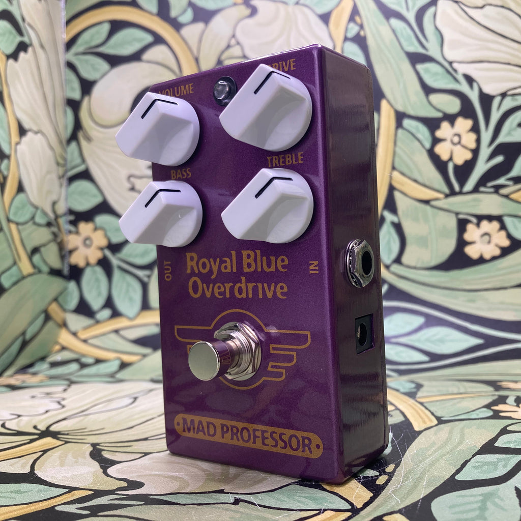 Royal Blue Overdrive offers a wide range of tones from light overdrive into distortion and at lowest Distortion knob setting works as an EQ. It can also be used to create tube amp-like crunchy ‘strike hard for distortion’ effect. There is not much filtering on the overdrive, to provide a transparent tone that you can tailor with both the Treble and Bass controls.
