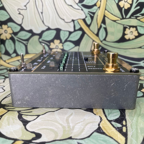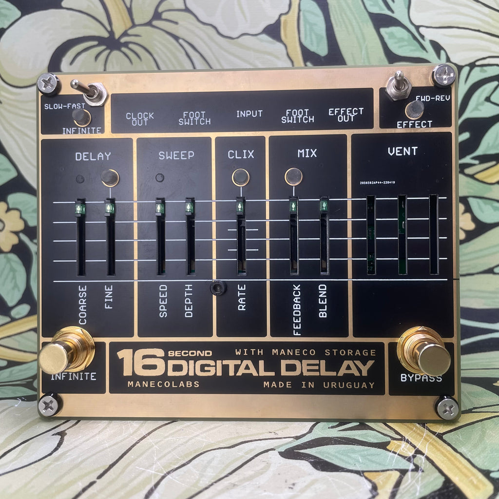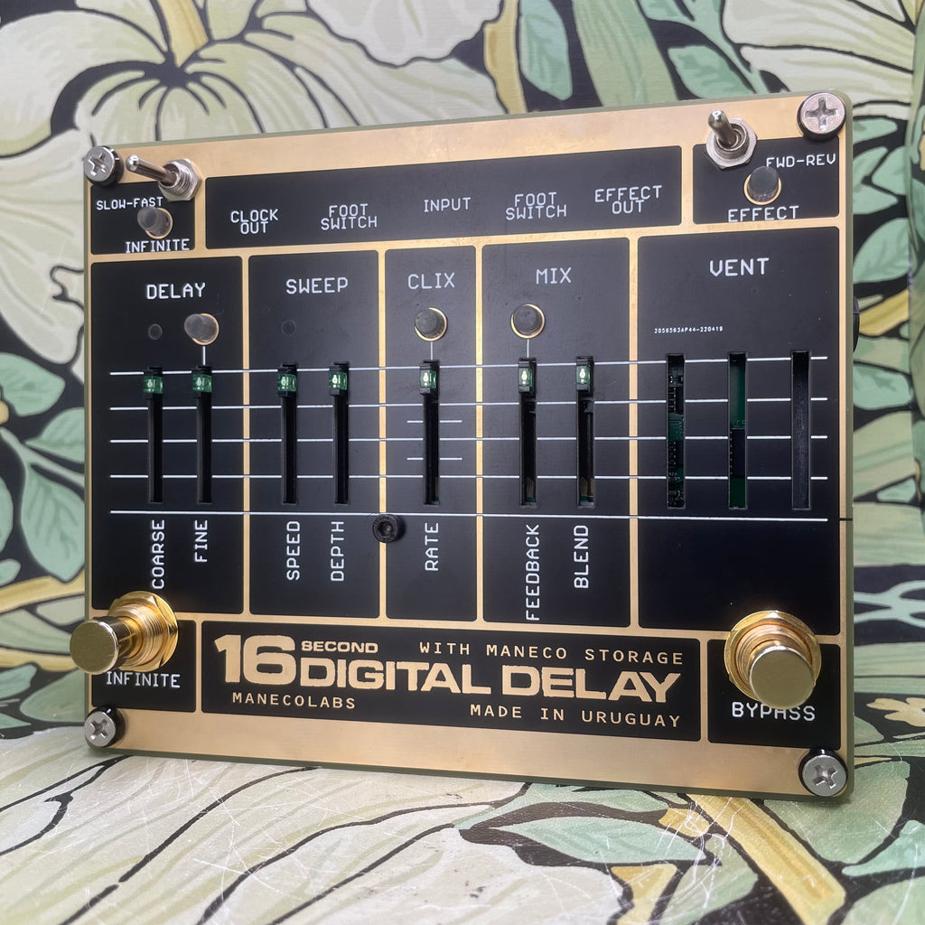 Sixteen seconds of vintage delay, inspired by the original looping delay from 1983. Device topology is the same as first digital delays from that era, with an all-analog signal path, pre emphasis and de emphasis, compression and expansion, antialias and reconstruction filtering and input output buffering and mixing. Digital processing is limited only to analog to digital conversion, memory management and storage and digital to analog conversion, all in glorious eight bits .