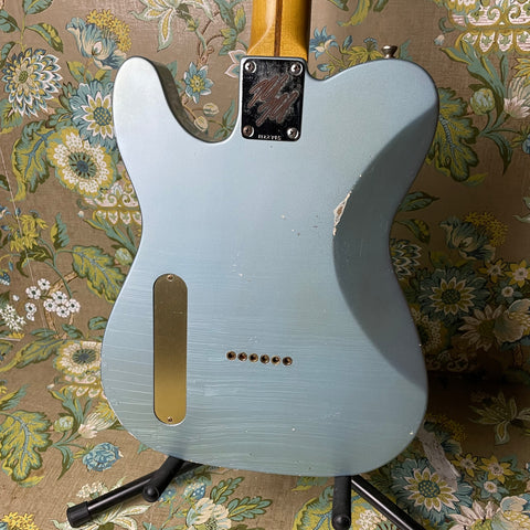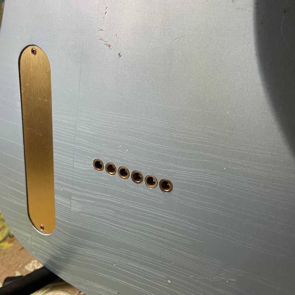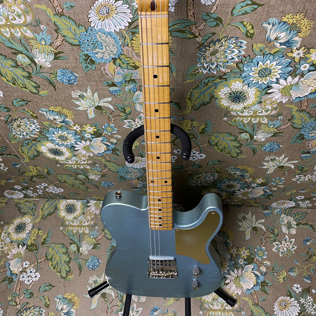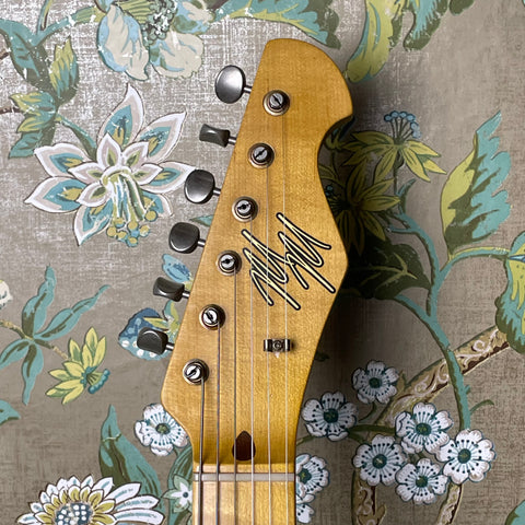 This deceptive lil tele features a swamp ash body, maple soft V-profile neck (0.913"-0.983" thickness), maple fretboard (7.25" radius) and 1.64" nut width. And, as mentioned above, this Chupacabre comes stocked with a TV Jones Filtertron (B: 7.63k). Additional electronics include volume and tone (push/pull) knobs, Treble-Bleed circuit, Paper-in-oil capacitors and vintage 25 awg cloth wire. Everything about this guitar feels like butter. The action is spot-on and the rolled edges of the neck make this feel like a truly smooth and broken in Tele. Serial # is 1122745