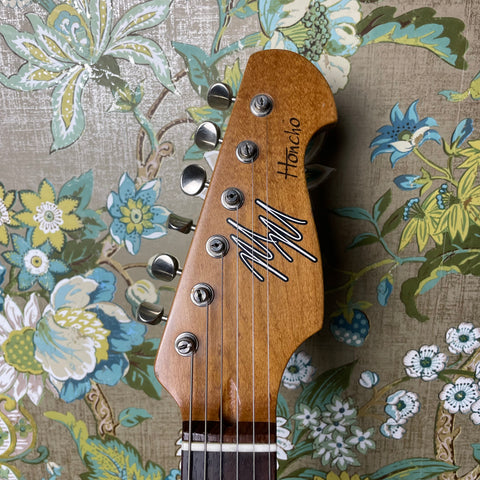 The Honcho is a hybrid guitar of Mario’s own design. This proprietary model utilizes the best of both the “S” and “T” styles, making a hybrid guitar that is comfortable, but also vintage-familiar. Mario considers this model to truly be the “Swiss Army Knife” of guitar tone!