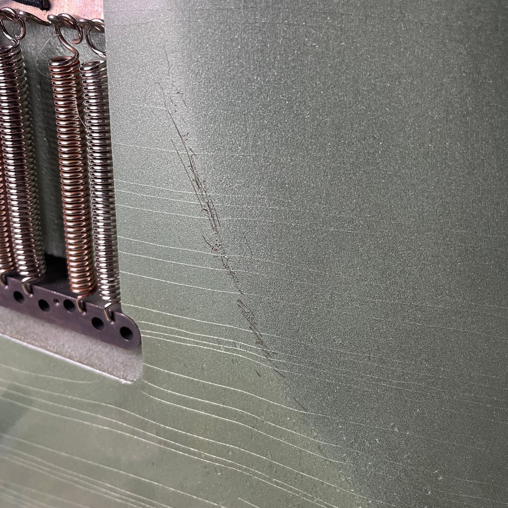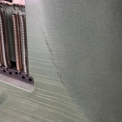 The pickguard has a crack in it by the bottom screw from where a previous owner apparently tightened that screw a bit too hard, but we've secured the crack to make sure you don't have to worry about losing that little chunk of pickguard. Aside from the pickguard crack, this bad boy just has some light signs of playwear that blends right in with the relic job. This thing is just sweet.