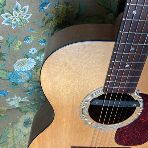 An affordable Martin? We love to see it. This somewhat rare mid 90s-early 2000s acoustic is essentially a stripped down 000-18 for a fraction of the price, which is why you don't see these terribly often. They ultimately stopped making them because the sales of this model soared high above some of their more expensive builds. Rest assured, this USA-made, 25.4" scale, solid Spruce top is congruent with the top-tier quality that Martin is known for. Solid Spruce top, solid Mahogany back, laminated Mahogany sides, Mahogany neck, and Rosewood fretboard...It's the real deal. It's outfitted with a Fishman soundhole pickup with the endpin jack for no-fuss gigging. On a less technical note, it plays incredibly well in comparison to some other acoustics of the same price tier. The intonation is nice and even all up and down the fretboard and it feels pleasantly smooth, whereas some other entry-level acoustics tend to have intonation issues and feel more rigid. Not this one! This Martin is a winner and likely won't stick around for long.