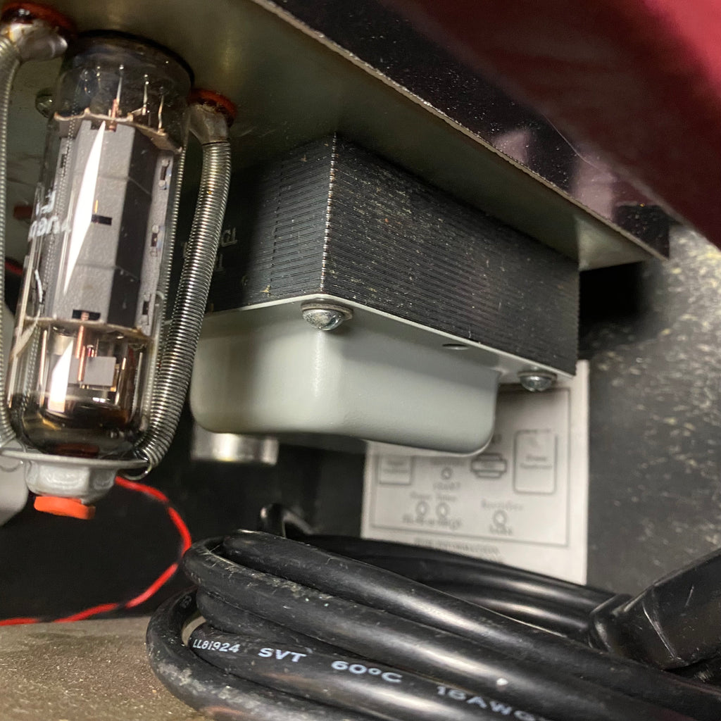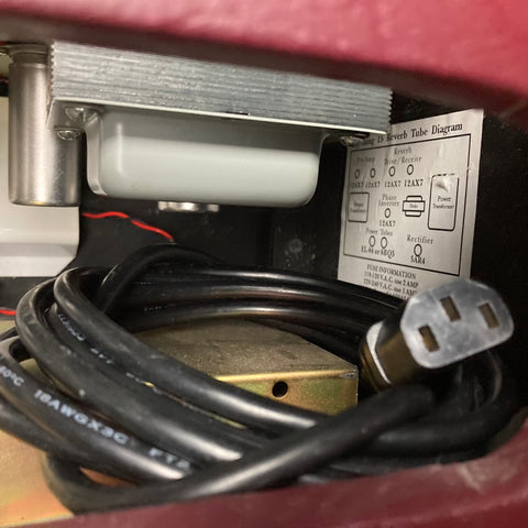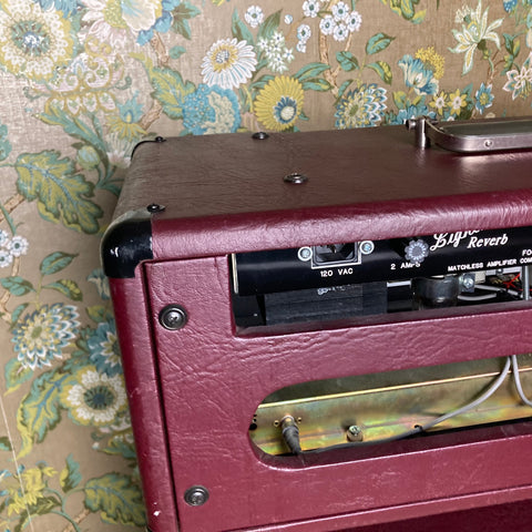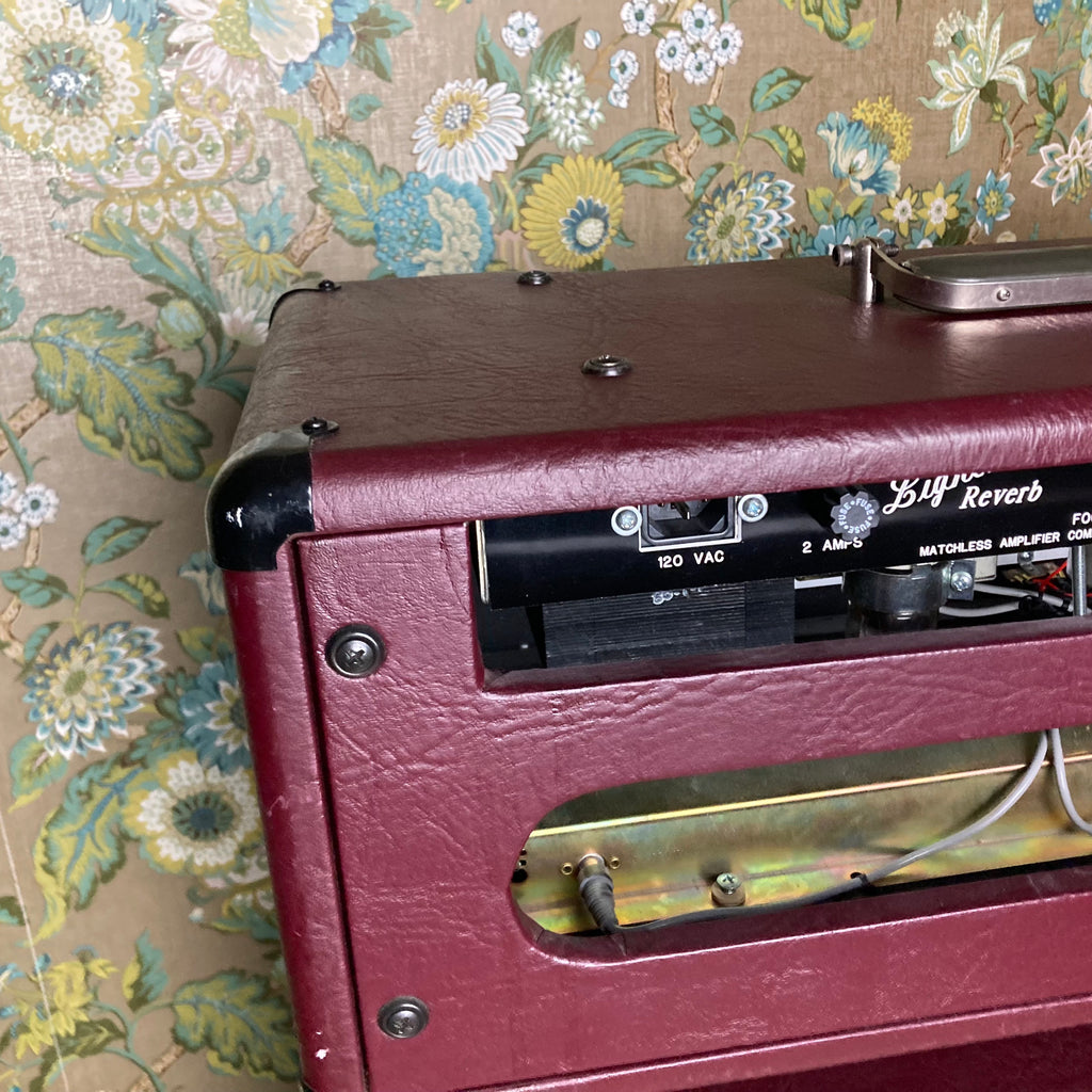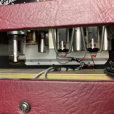 There are a lot of complex tones to be had out of this classic amp; with the interactive Treble and Bass controls along with a Master volume you can pump out all the headroom you need, or roll the Master back and the Volume up for some gnarly early break up tones. Don't let the 15 watts fool you. This maroon motha is LOUD. And the footswitchable reverb is drippy, just like you want it to be.