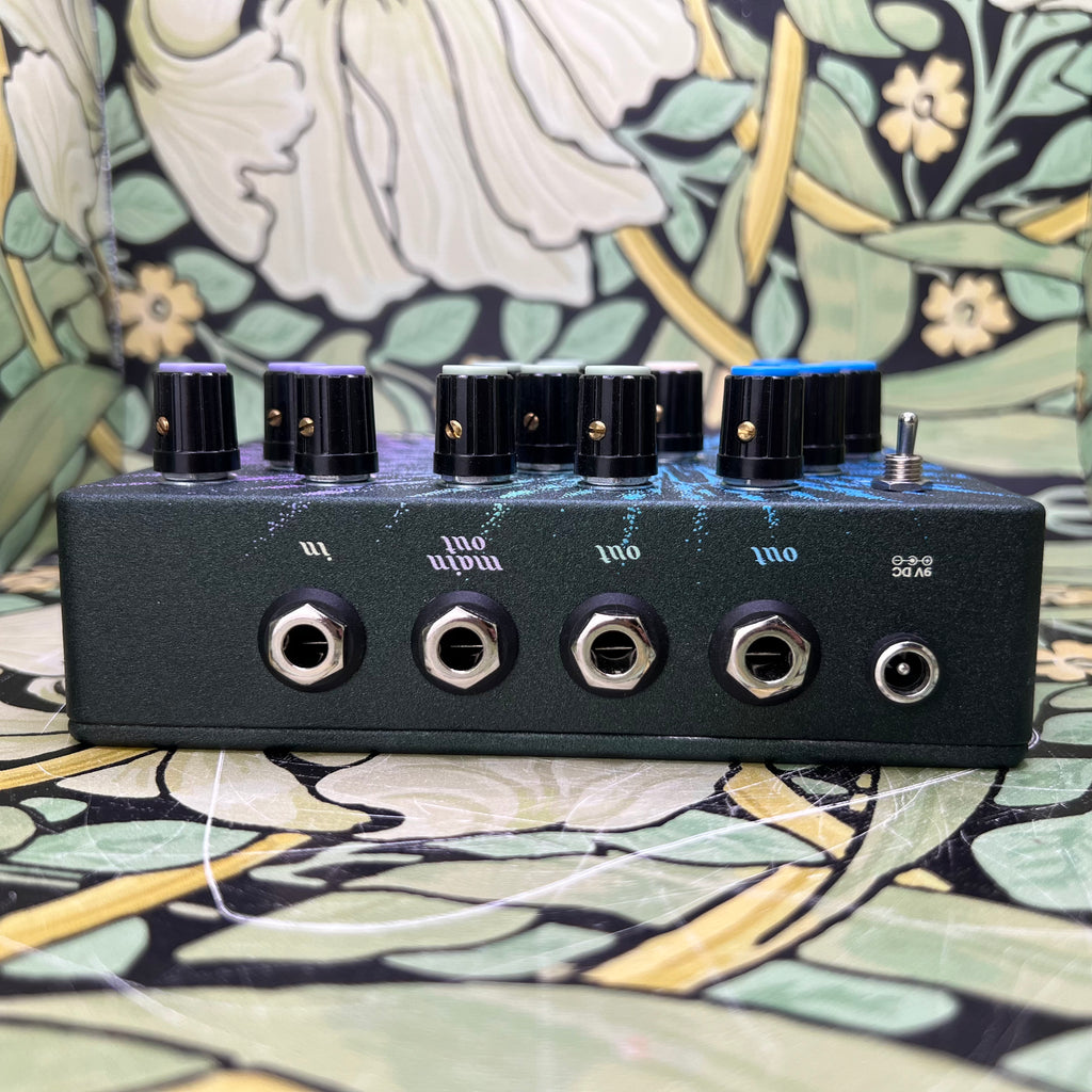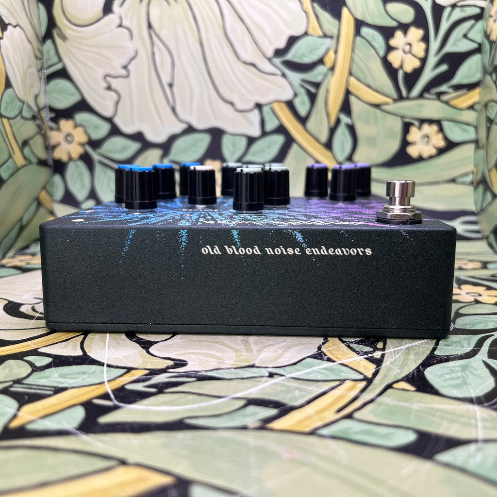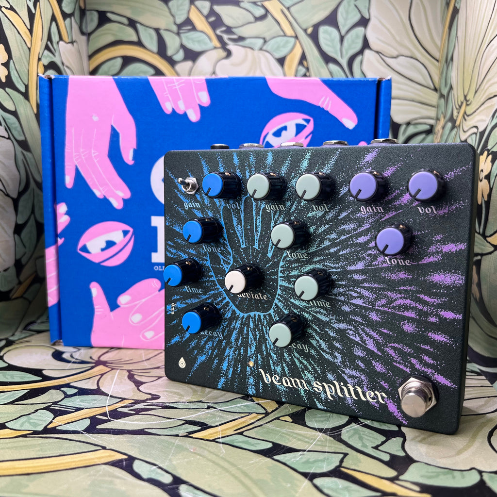 Ever inspired by the concept of embiggening sound, Old Blood Noise Endeavors have created a device that goes beyond doubling, offering three overdrives spread apart in time to create three instruments out of one. With three different overdrive voices, and control over the delay time, feedback, and time variation of two of those voices, Beam Splitter creates a trio out of a solo player, in parallel mono, stereo, or trereo.