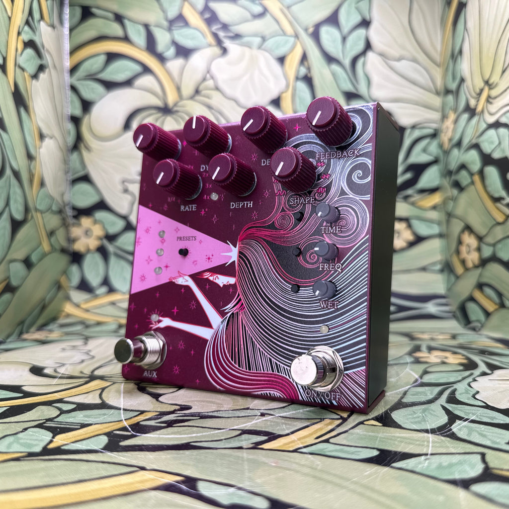 Sunlight is a reverb pedal focused on motion and dynamics. Post-reverb delay, filtering, and volume control all can be modulated via the onboard LFO, letting you craft your own flanger, chorus, moving filter, or tremolo effects through different combinations of parameters. A dynamic knob lets you either create dynamically held trails or enveloping LFO rates. This counterpoint to Dark Star brings lightness and excitement, and sits perfectly on a pedalboard alongside it.
