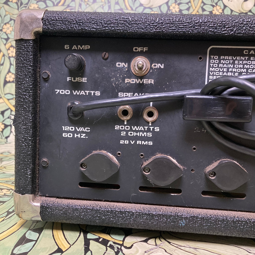 The 400 Series Bass was Peavey's 200watt solid state amp head offering for bass players that need a whole lot of output power without the maintenance requirements of the competitors' tube amps.