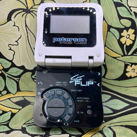 The Peterson StroboFlip is a compact hand-held tuner with an accuracy of 1/10th of one cent (1/1000th of one semitone or half step). It is also a programmable tuner, allowing you to program up to eight of your own tempered tunings as well as giving you access to 33 other preset temperaments and SweetenersTM .