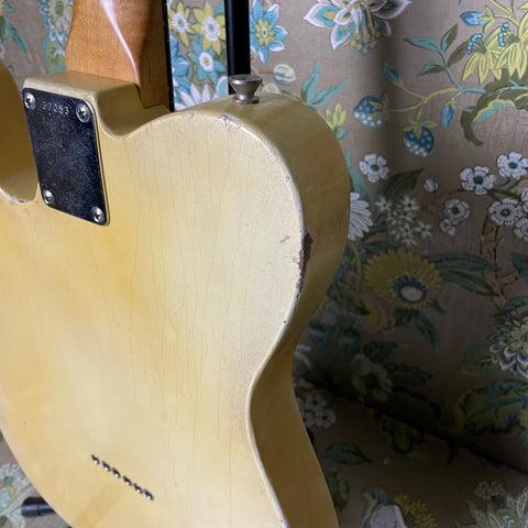 This stunning T-style RetroSonic brings to modern players all of the features that made the originally early 60s guitars some of the most recorded sounds ever. It features a catalpa body, maple C-profile neck (0.908"-1.02" thickness), and rosewood fretboard (10" radius). Not surprisingly the full tone from this guitar comes from a pair of amazing Budz Alnico Dano 542 single coils (N: 7.39k, B: 9.31k). Everything about this guitar feels like butter. The action is spot-on and makes this feel like a truly smooth and broken in Tele.