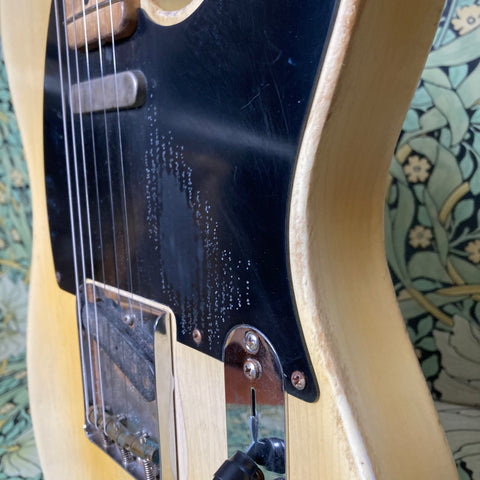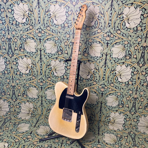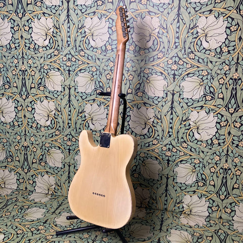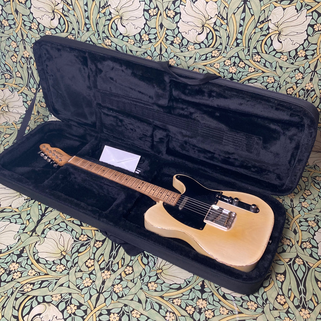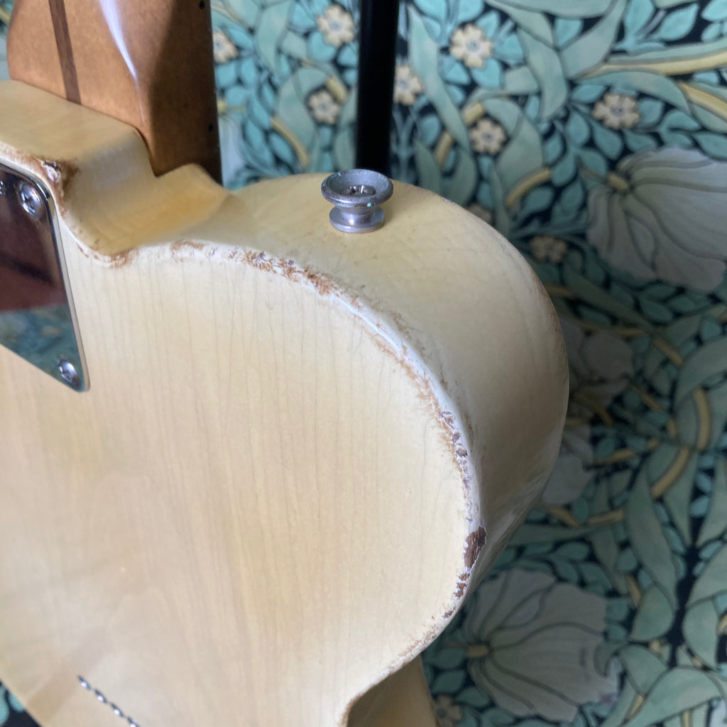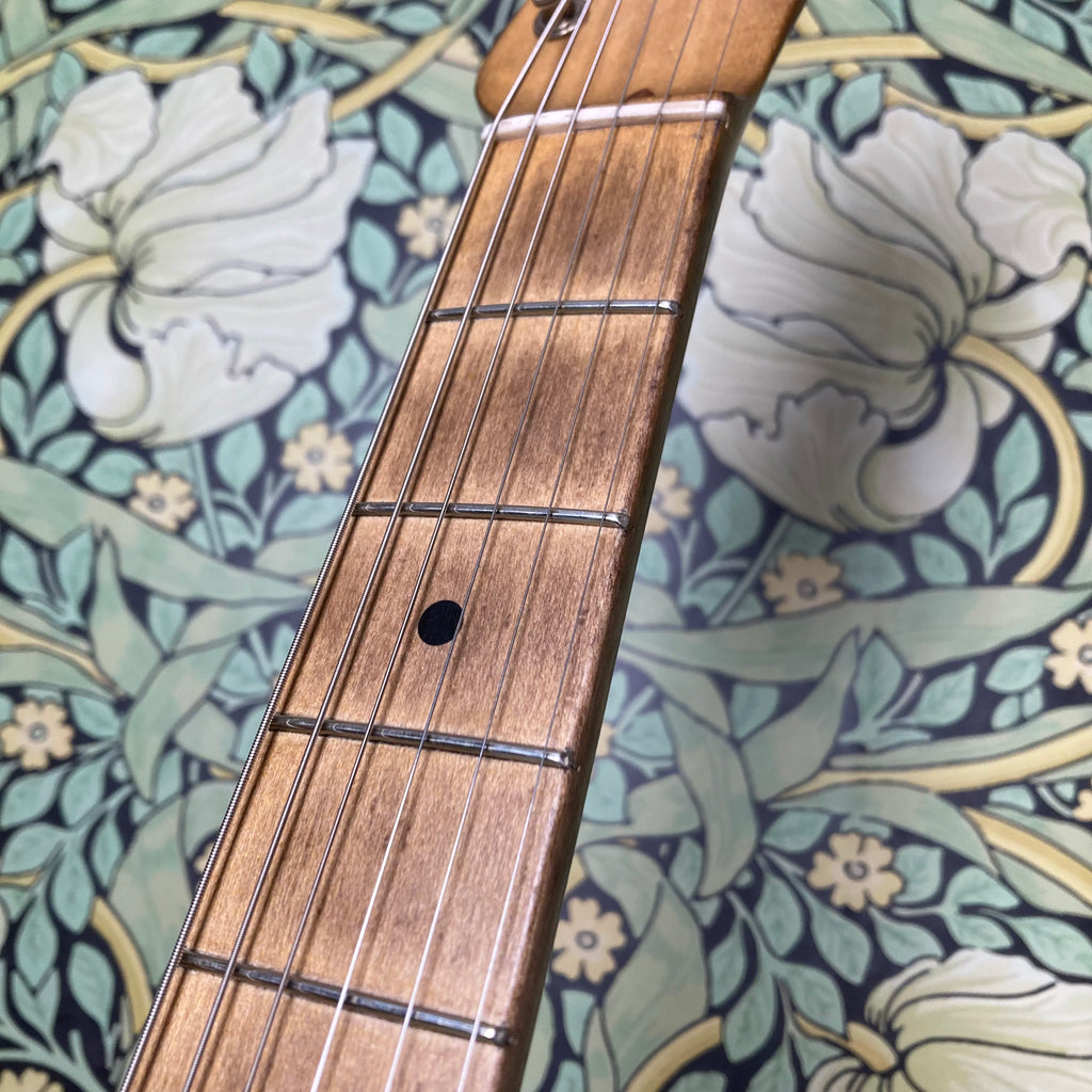 This stunning T-style RetroSonic brings to modern players all of the features that made the originally early 60s guitars some of the most recorded sounds ever. It features a catalpa body, maple medium C-profile neck, and maple fretboard (10" radius). Not surprisingly the full tone from this guitar comes from a pair of amazing Arcane pickups (50's Experience flat pole in the bridge, and 42's Experience Nickel Cover in the neck). Everything about this guitar feels like butter. Butterscotch, that is. Did we mention it's finished in frickin' nitro?!?! The action is spot-on and makes this feel like a truly smooth and broken-in Tele.