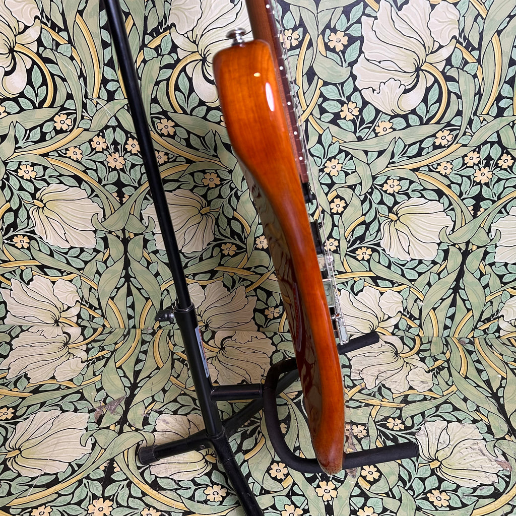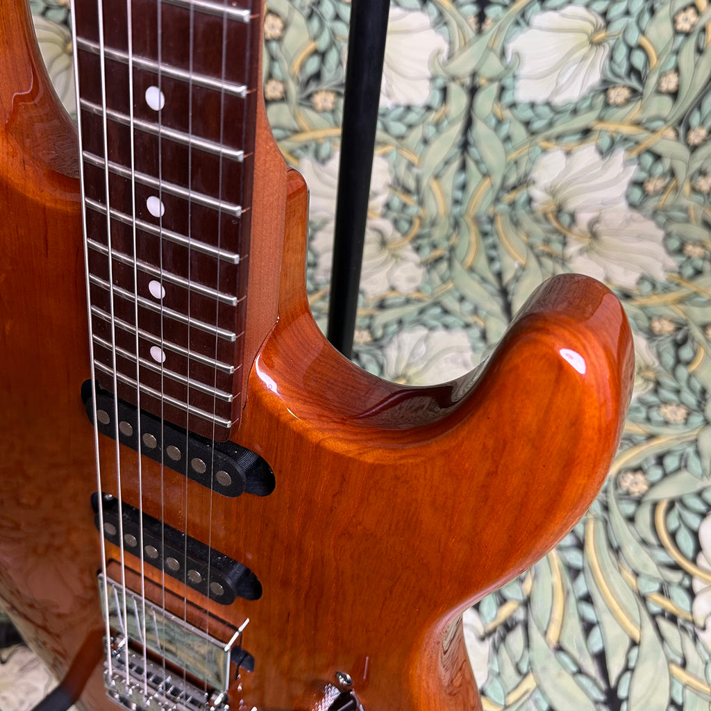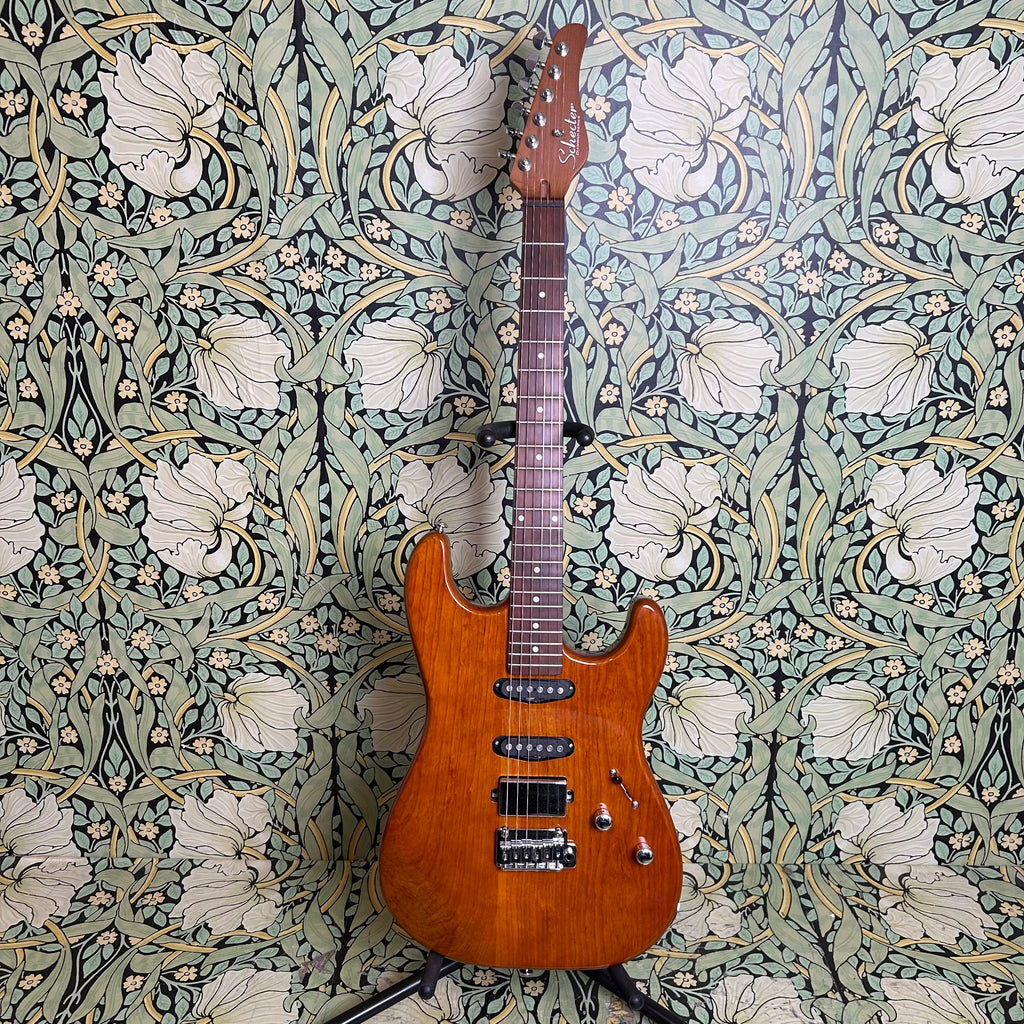 This Schecter is calling your name. This Van Nuys has an ash body with a comfy roasted maple C-shape neck (0.765"-0.885" thickness), 12" radius fretboard, and 1.65" nut width feels great and altogether weighing a breezy 8.28lbs!