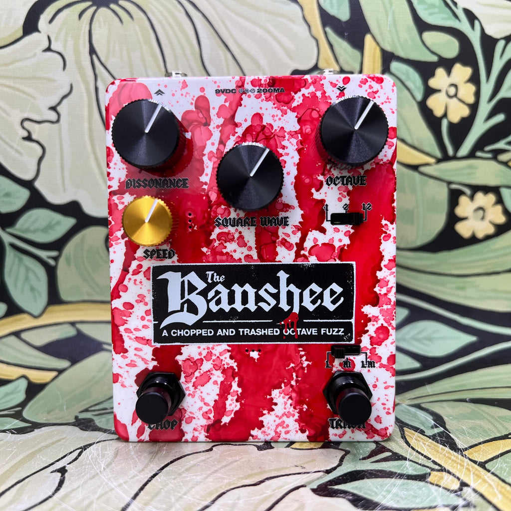 The Banshee is a chopped and trashed digital octave fuzz designed in collaboration with Jack Simmons of SLAUGHTER TO PREVAIL. Each pedal is individually splattered so no two pedals look identical.