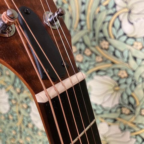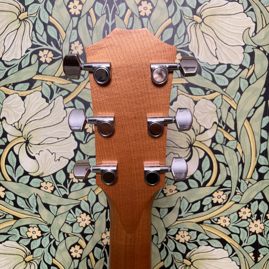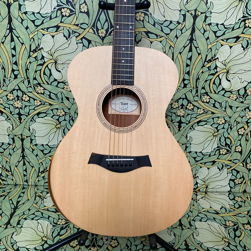 The Academy serves up bold sound with plenty of projection, while the armrest carved into the lower bout makes for a more comfortable feel for your strumming arm. With the Taylor Neck, players will notice a slender profile (0.837"-0.872" thickness) that accommodates your fretting hand, a comfortable 15" radius ebony fretboard, and a nut width of 1 11/16", making this a great choice for new learners.