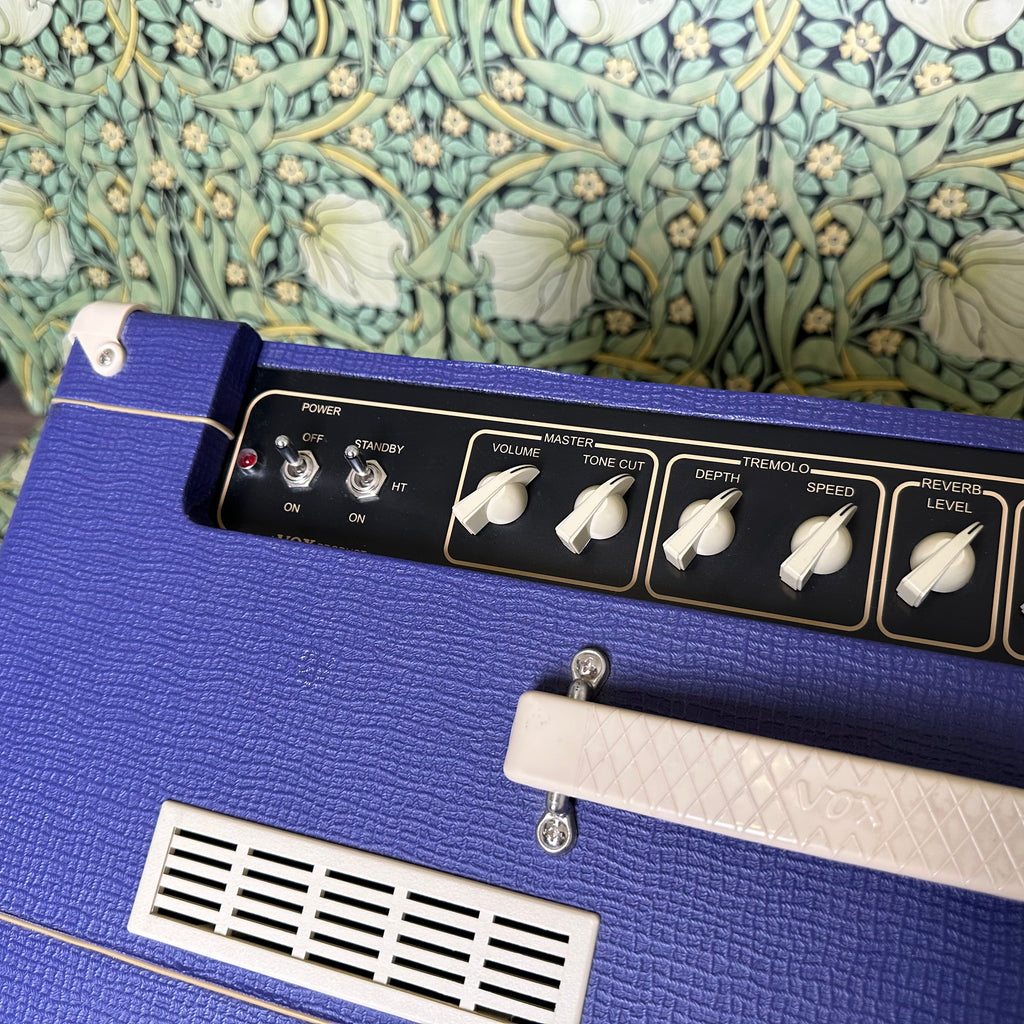 A popular favorite for the gigging guitarist, the AC15C1 is modern and toneful, yet it won't give you back problems like its big brother, the AC30. It's design is very similar, with one channel incorporating the preamp circuitry from the "Normal" input on the AC30, and the other channel featuring the "Top Boost" circuit. The preamp circuit is powered by three ECC83 tubes. It also uses two cathode-biased EL-84s. As you may have discerned from the name, this amp runs at 15 watts, which lends itself to a bit more natural tube breakup than its larger counterpart. Sweet, sweet tube breakup. You can even crank the gain and use the handy-dandy Master volume to squeeze out even more grit. With that being said, it's still an amazing platform for effect pedals and also works well on its own, featuring tremolo and a spring-based reverb. It houses one 16 ohm 12" Celestion Greenback speaker, with the ability to switch the impedance via the switch on the back. With loads of options at your fingertips, the AC15C1 is a great option for anyone looking for an affordable, portable, and tonally versatile amplifier.