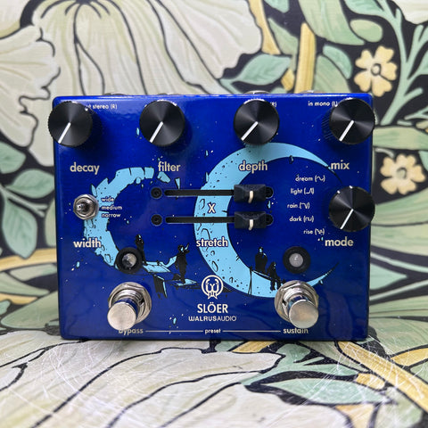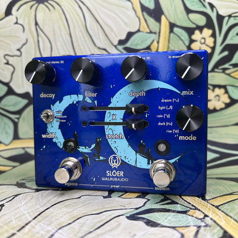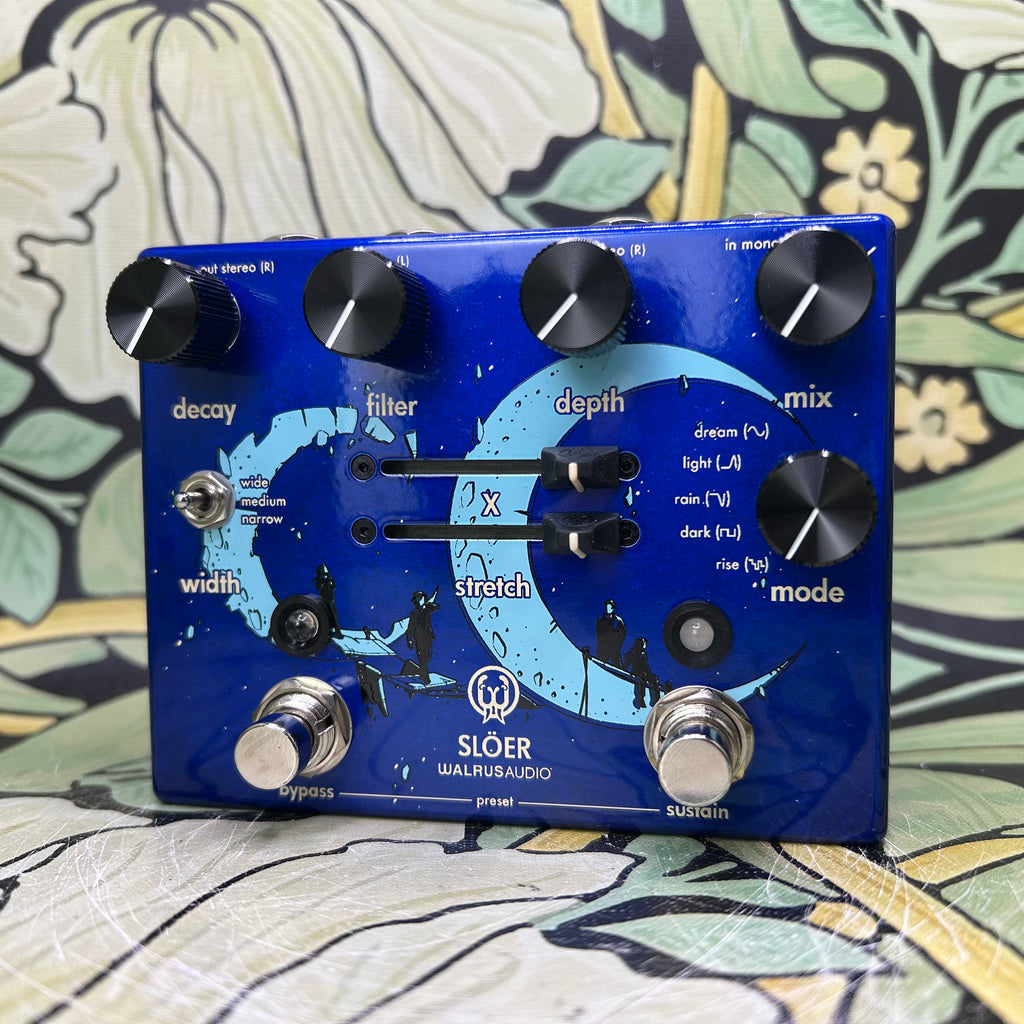 The Slöer can run in trails or no trails mode. In trails mode, when you turn the pedal off, the reverb decay dies off naturally. In no trails mode, the decay is abruptly cut off when you turn the pedal off. To toggle between either mode, hold down the bypass switch for 1 second while applying power to the pedal. Unplug power and repeat to toggle to the other mode.