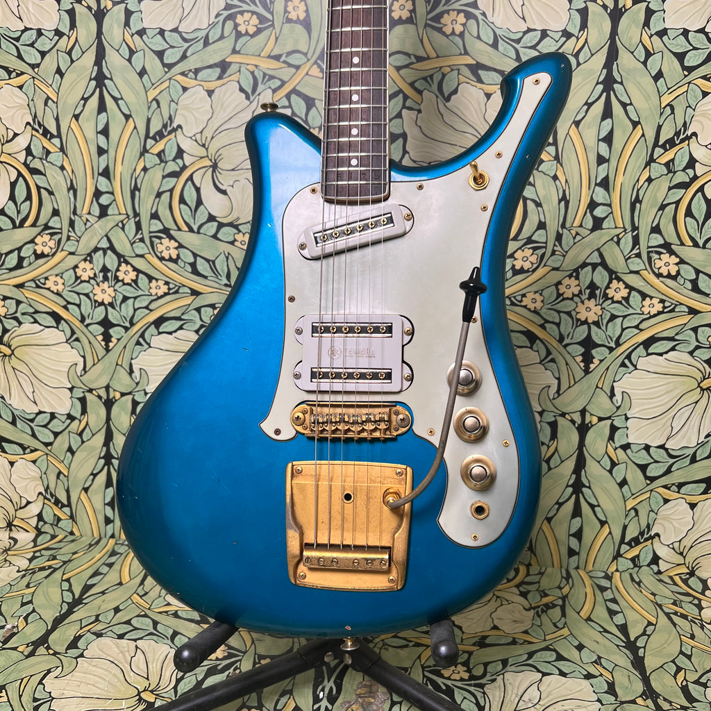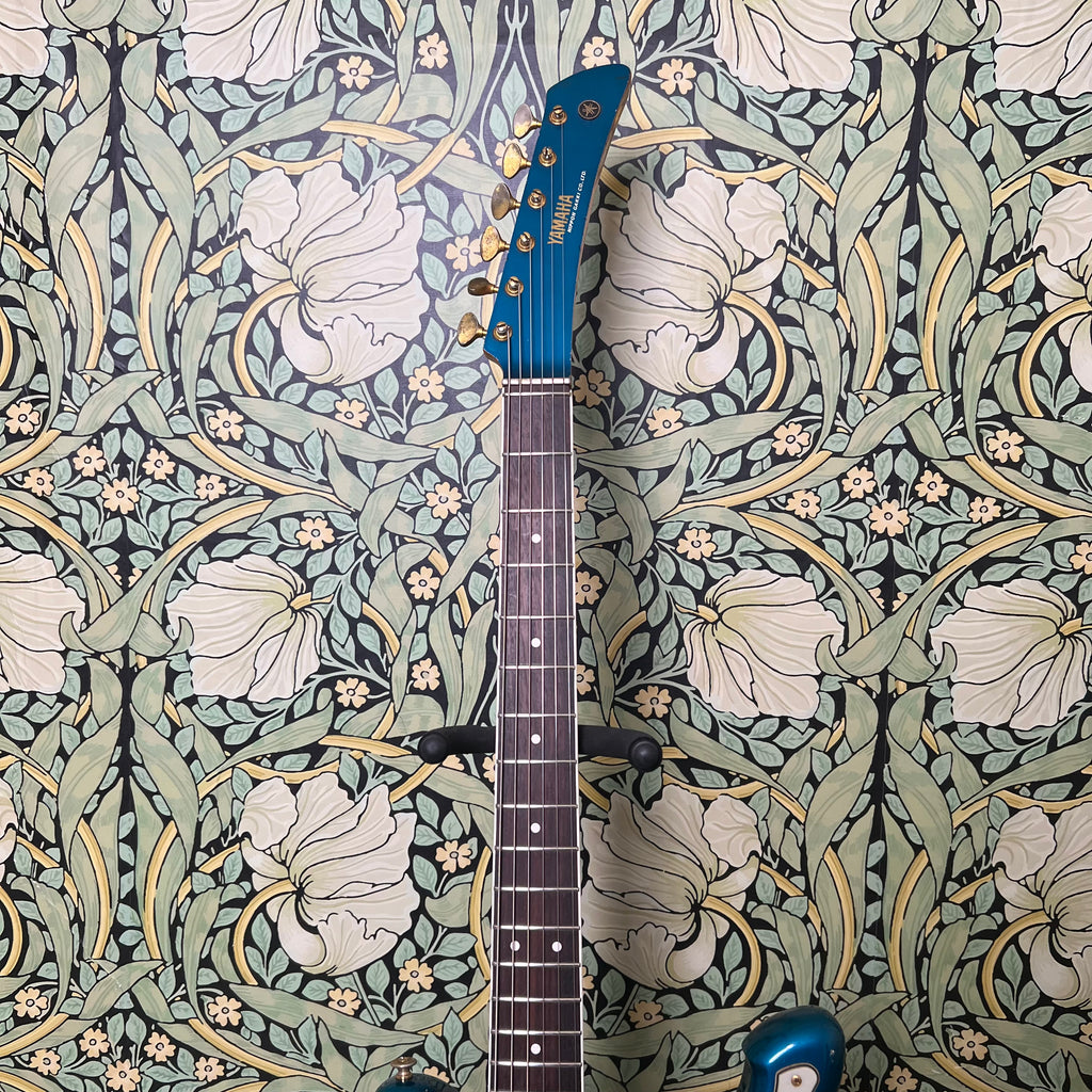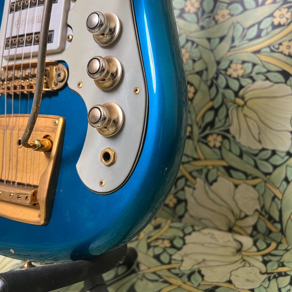 While not a ton is known about these elusive guitars, we do know one thing. This one is all stock and ready to rock coming with all it's original electronics. All original everything for that matter. The Flying Samurai were originally built to cater to the era's ever popular surf rock sound. All while still following the eclectic Japanese stylings and shapes the country was known for at the time. To accommodate this, the good folks at Yamaha gave this thing three of their in house single coil pickups packed into a body shape that is rumored to have inspired the Ibanez Iceman.