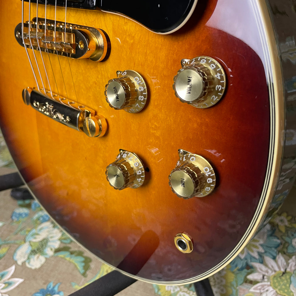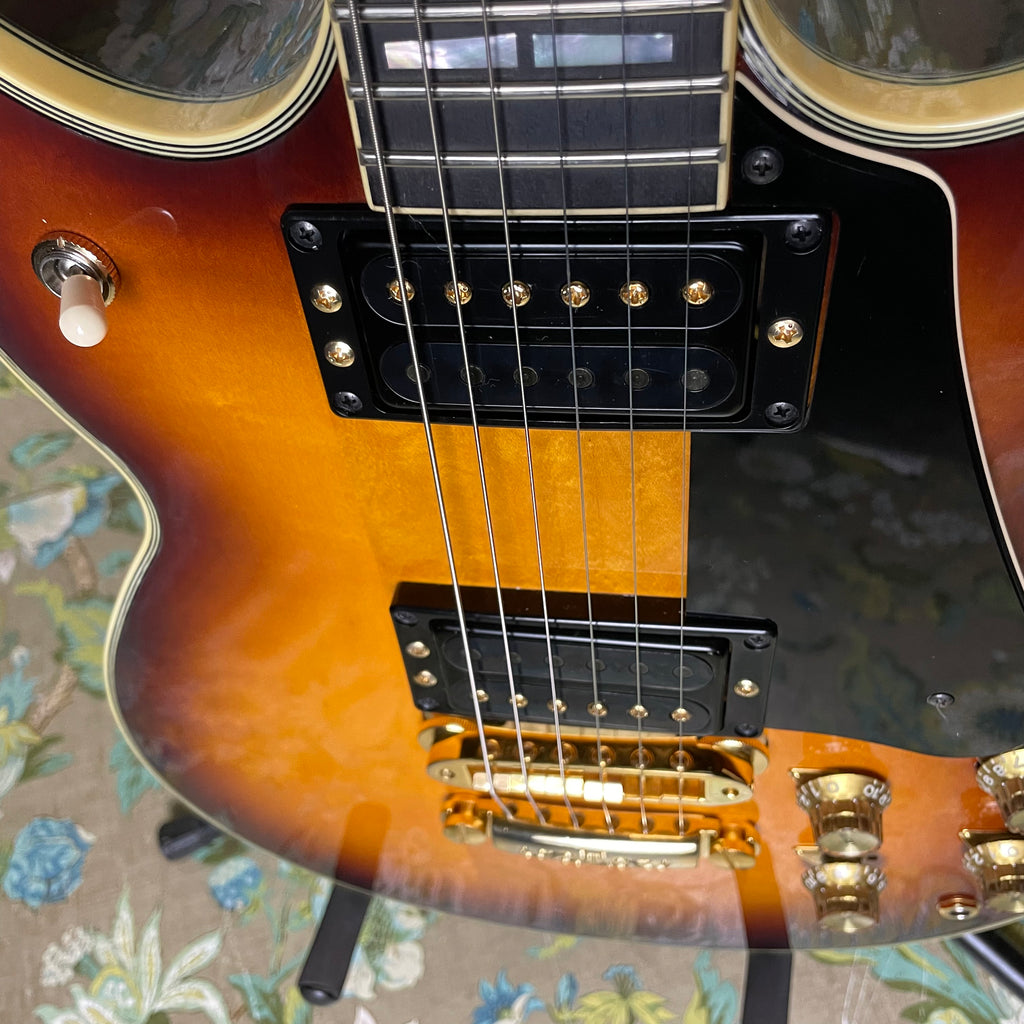 Electronics include stock double humbuckers (3.76k neck, 7.17k bridge) with Guild-style pickup tilt adjusters and classic Les Paul-style controls (two volume, two tone, one 3-way switch) that feature push/push knobs giving you access to single coil tones. What more do you need? The sound is punchy and clear with more articulation and versatility than you'd expect.